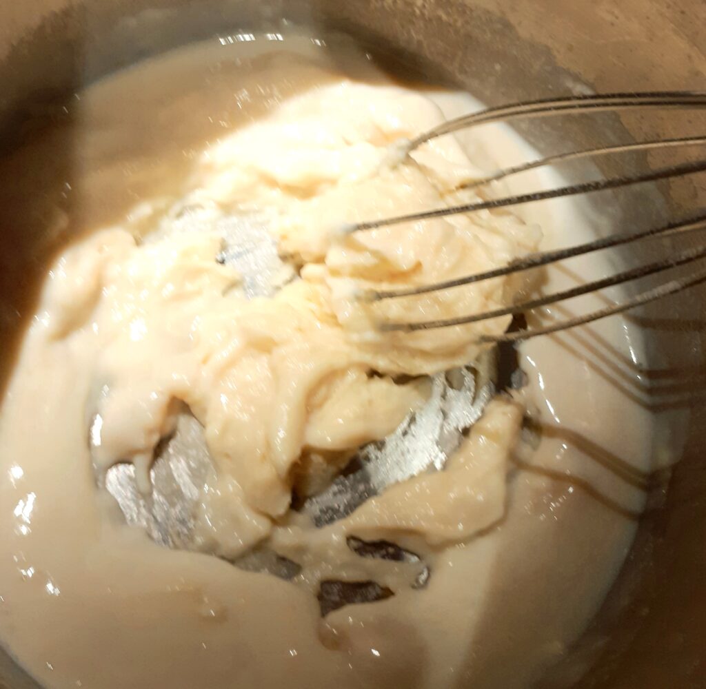 - Tilsæt melet og rør det godt sammen.